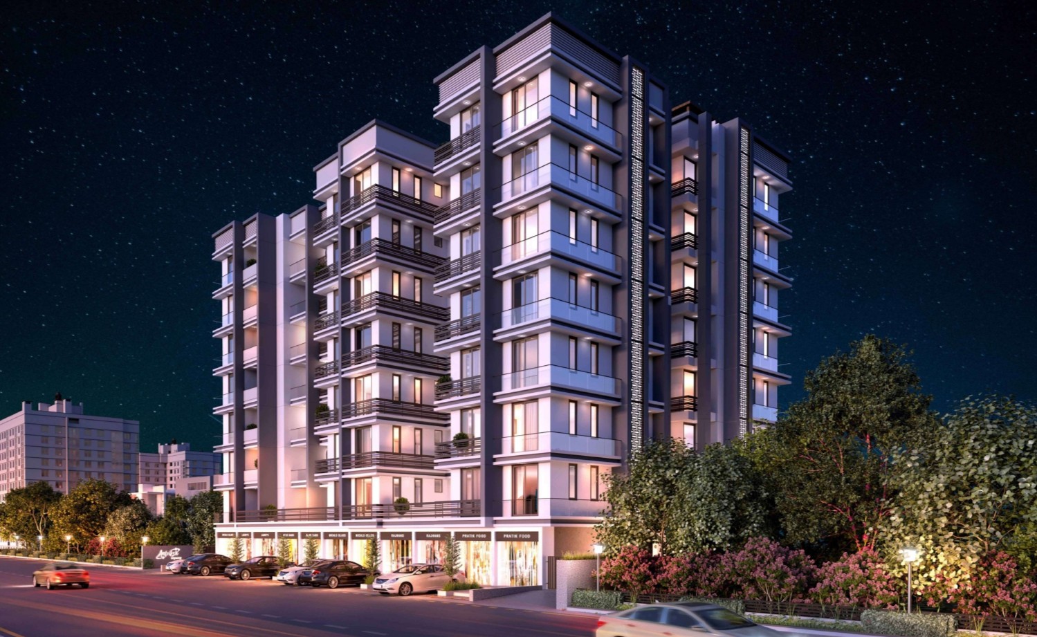 Grand tower with 7 storeys where every flat is road facing. Located in a premium area of Jamnagar, walkable distance from leading schools and temples.